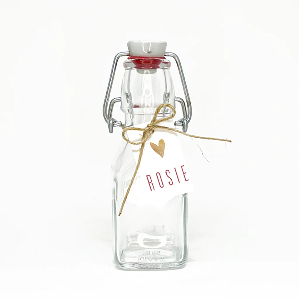 Thuis hoef je deze labeltjes met hartje enkel nog aan de doopsuiker te bevestigen met passend bevestigingsmateriaal.