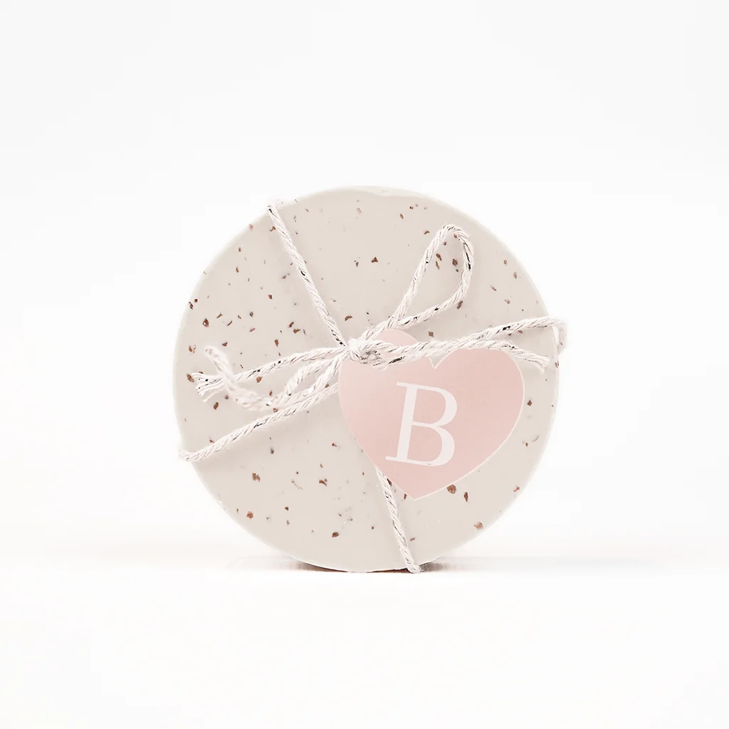 Thuis hoef deze hartjes labeltjes met initiaal enkel nog aan de doopsuiker te bevestigen met passend bevestigingsmateriaal.