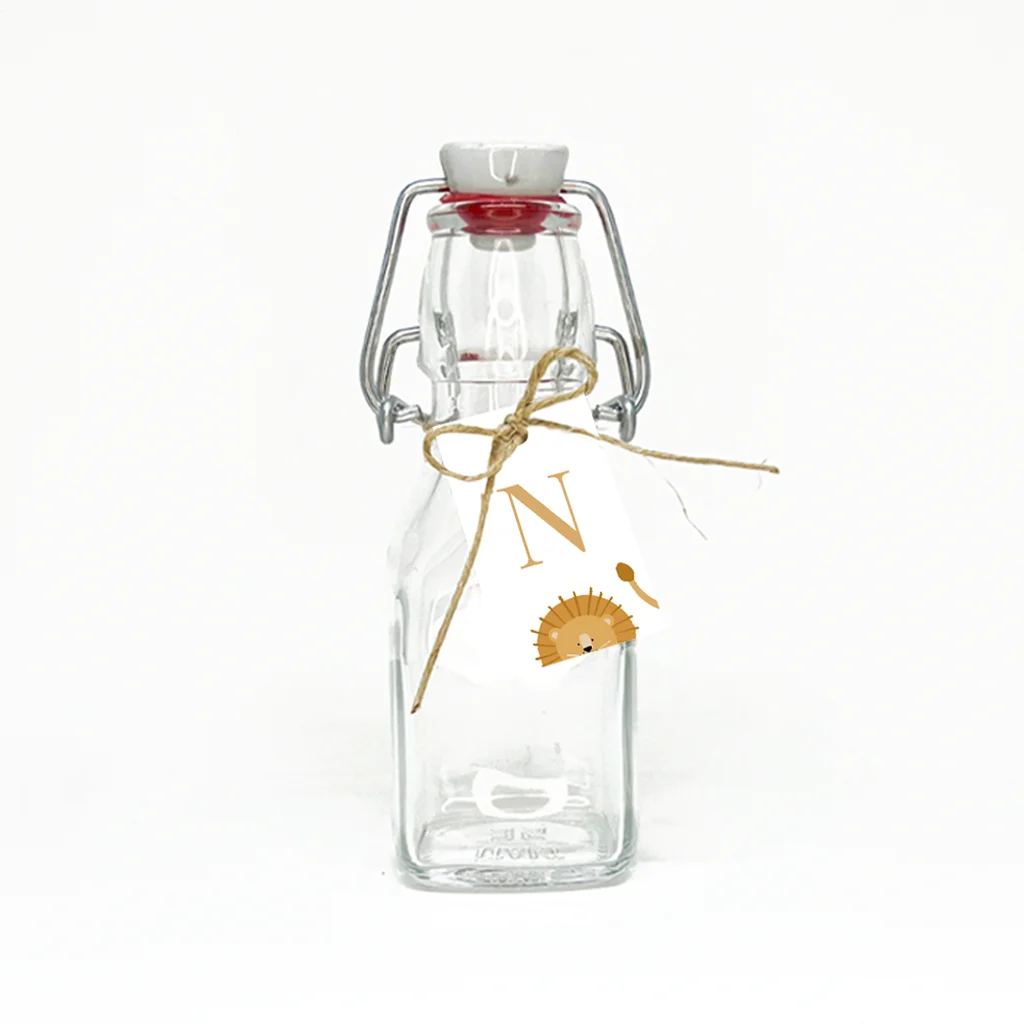 Thuis hoef je deze labeltjes in met initiaal enkel nog aan de doopsuiker te bevestigen met passend bevestigingsmateriaal.