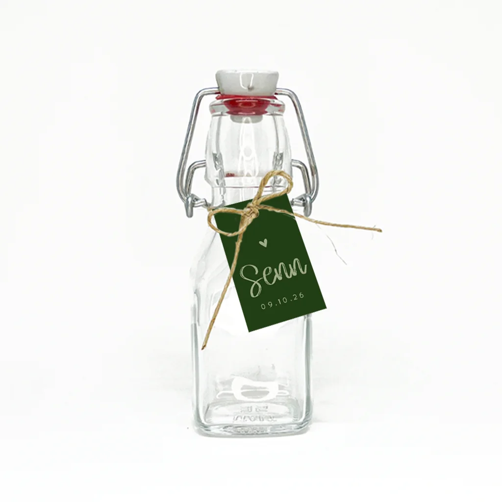 Thuis hoef je deze labeltjes in staande vorm in legergroen enkel nog aan de doopsuiker te bevestigen met passend bevestigingsmateriaal.