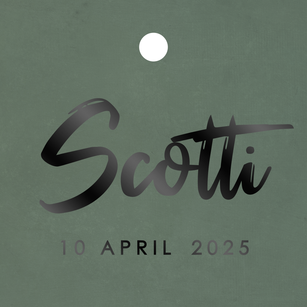 Thuis hoef je deze stoere labeltjes met zwart folie enkel nog aan de doopsuiker te bevestigen met passend bevestigingsmateriaal.