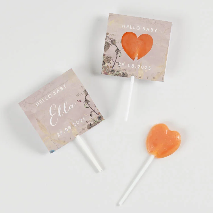 Hoe mooi is dit doopsuiker lollyhoesje in oudroze? Je kunt het hoesje geheel personaliseren en vouwt het thuis gemakkelijk om een lolly heen.