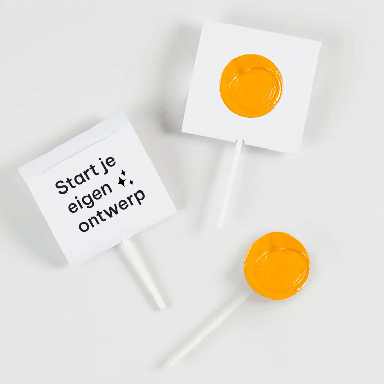Hoe leuk is dit doopsuiker lollyhoesje met ronde uitsnede ? Je kunt het hoesje geheel personaliseren in de online editor. Thuis hoef je de hoesjes alleen nog om een lolly heen te vouwen.