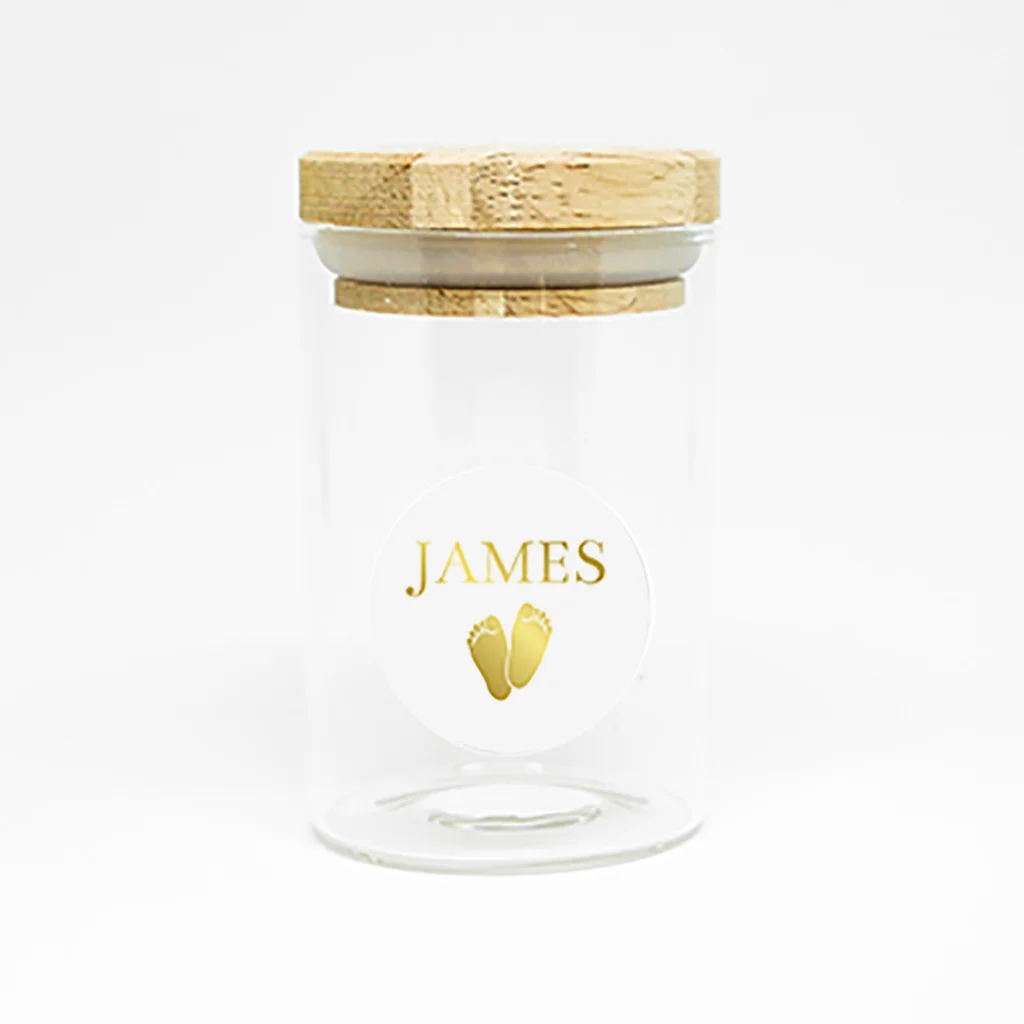 Je kunt deze doopsuikersticker met goudfolie babyvoetjes zelf naar wens bewerken in onze editor, voeg bijvoorbeeld (meer) foliedruk toe of pas kleuren en lettertypes aan. Thuis hoef je ze enkel nog op het doopsuiker item te plakken.