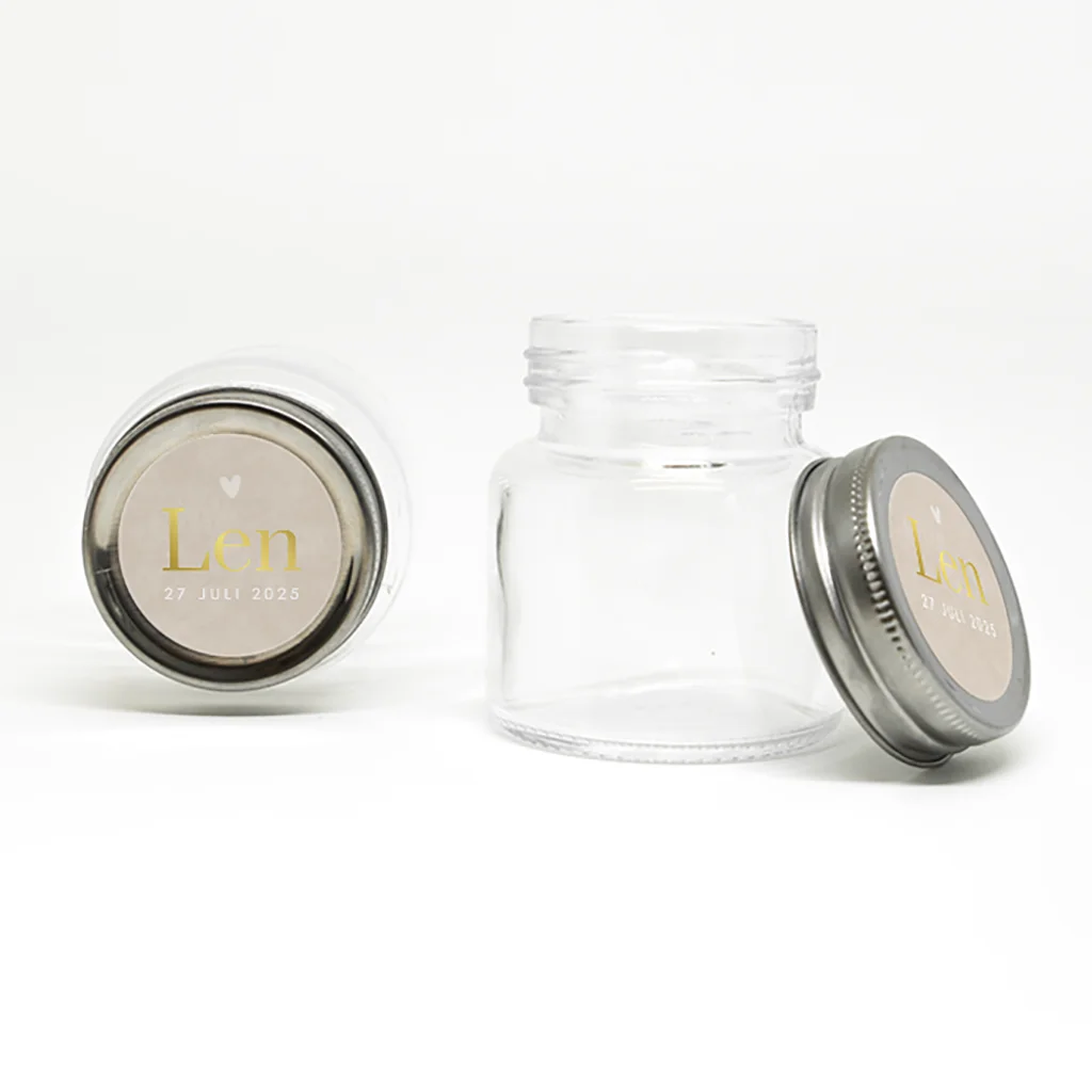 Doopsuiker sticker met naam in goudfolie | 25 stuks