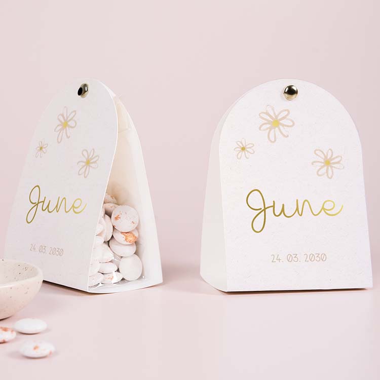 Doopsuiker tentkaartje met madeliefjes en goudfolie