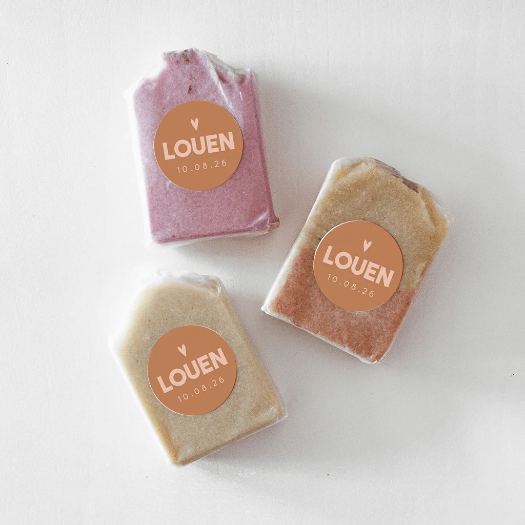 Je kunt deze doopsuikersticker met naam en hartje zelf naar wens bewerken in onze editor, pas zelf de kleuren of lettertypes aan. Thuis hoef je ze enkel nog op het doopsuiker item te plakken.