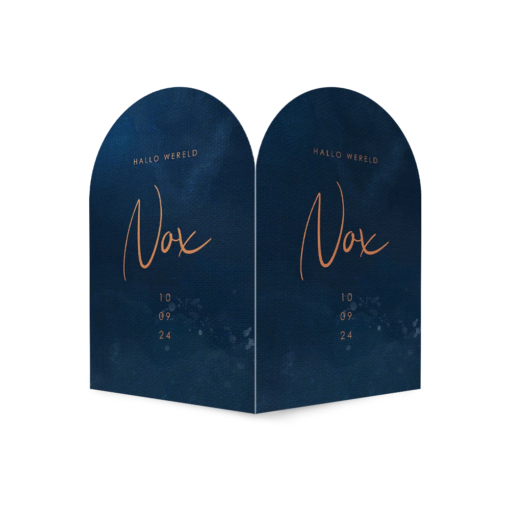 Geboortebord raam in boogvorm met een donkerblauwe achtergrond