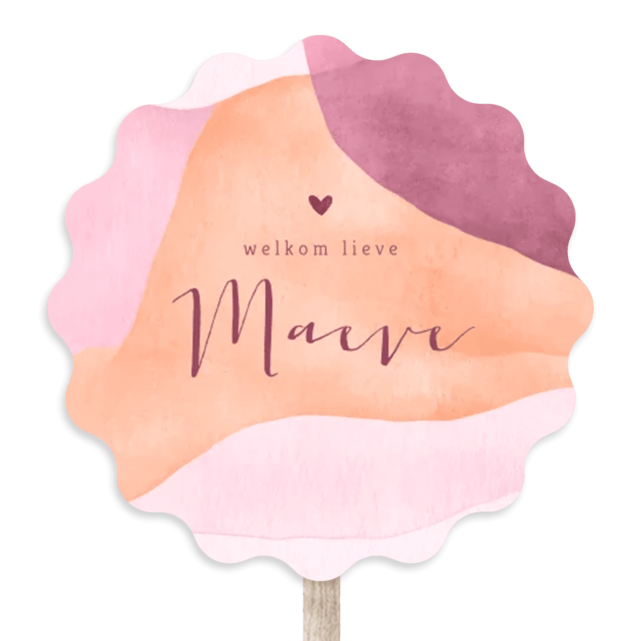 Maak de geboorte van jullie kleintje bekend met een geboortebord voor in de tuin! Dit tuinbord heeft kleurrijke watercolour en een golvende rand. Daaronder staat de naam van jullie kleintje. Bewerk het bord gemakkelijk in onze editor.