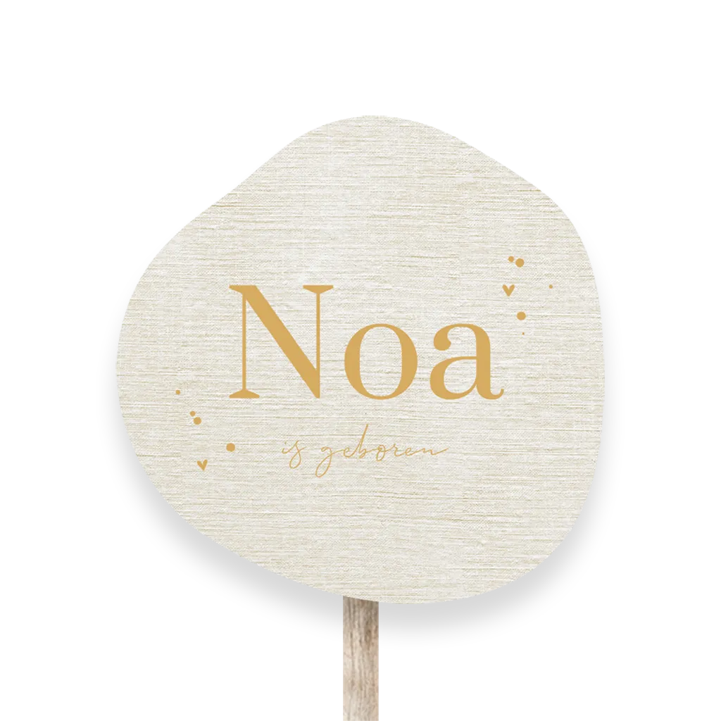 Maak de geboorte van jullie kleintje bekend met een geboortebord voor in de tuin! Dit tuinbord heeft een organische vorm met een mooie linnen look achtergrond. De kleine hartjes geven het een lieve uitstraling. Bewerk het bord gemakkelijk in onze editor.