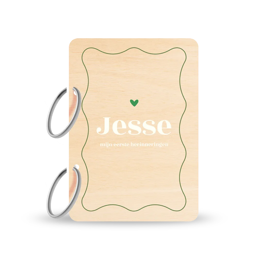 Een simpel maar prachtig design op een houten bewaarbundel voor geboortekaartjes. Deze bewaarbundel is gemaakt van multiplex hout, heeft afgeronde hoeken en twee metalen ringen. Je kunt de voorzijde van de bundel naar wens personaliseren in de editor. Zo onwijs leuk!