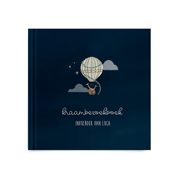 Kies voor dit stijlvolle kraambezoekboek met illustraties van een luchtballon en bewerk gemakkelijk in de editor.
