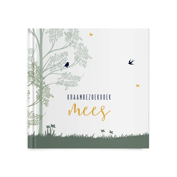 Kies voor dit kraambezoekboek met bomen en vogeltjes en bewerk gemakkelijk in de editor.