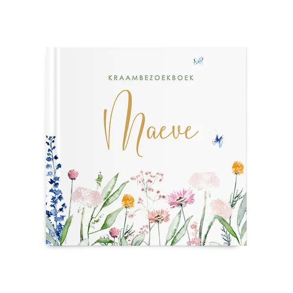 Een prachtig kraambezoekboek voor een meisje met kleurrijke bloemen. Zo mooi! Kies voor dit kraambezoekboek en bewerk gemakkelijk in de editor.