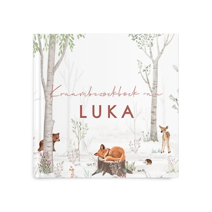 Kies voor dit kraambezoekboek met bosdieren en bewerk gemakkelijk in de editor.