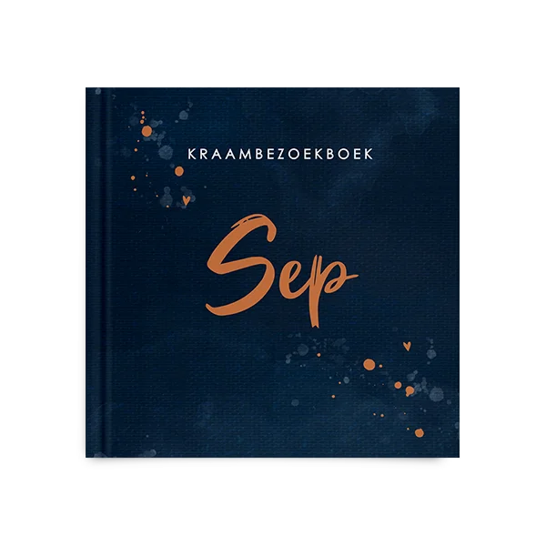 Stoer kraambezoekboek met spetters op donkerblauw
