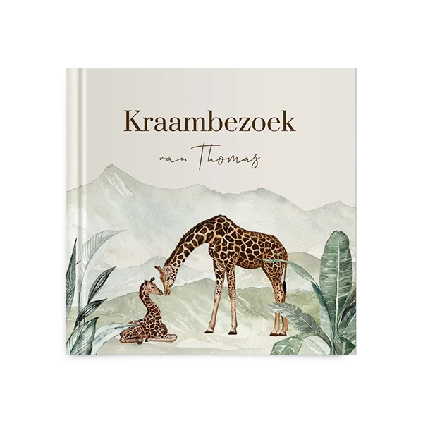 Kies voor dit avontuurlijke kraambezoekboek met een lief girafje en zijn moeder en bewerk gemakkelijk in de editor.