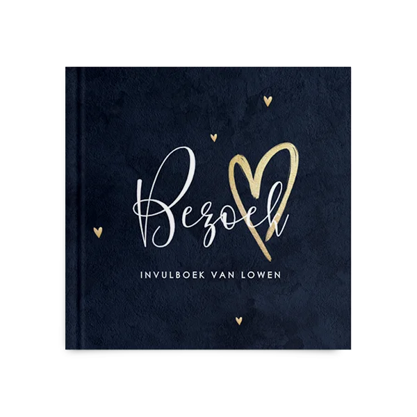 Kies voor dit kraambezoekboek met gouden harten en bewerk gemakkelijk in de editor.