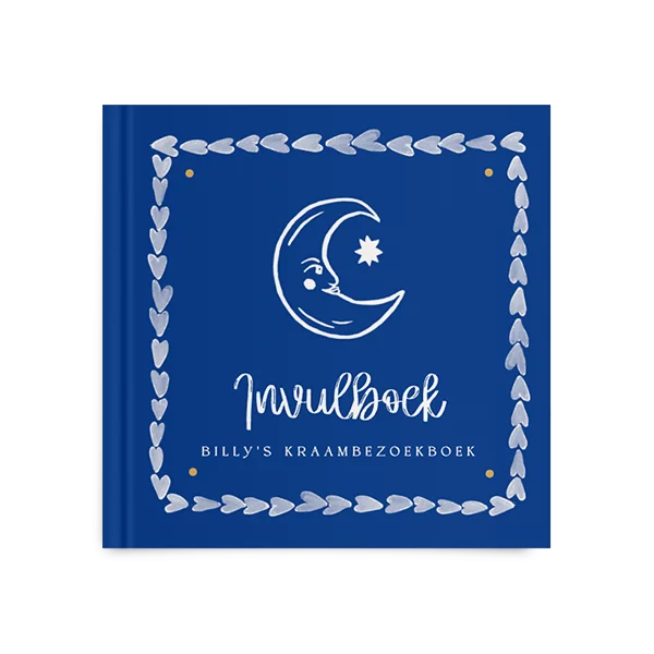 Kraambezoekboek voor jongetje donkerblauw met maan