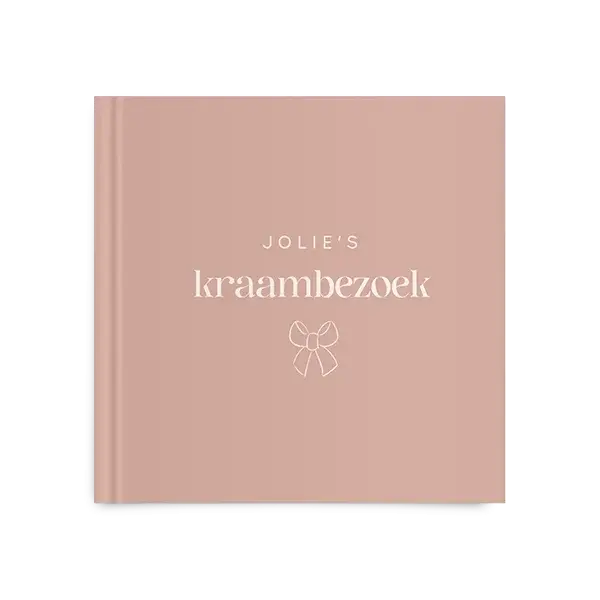 Kies voor dit kraambezoekboek in oudroze en bewerk gemakkelijk in de editor.