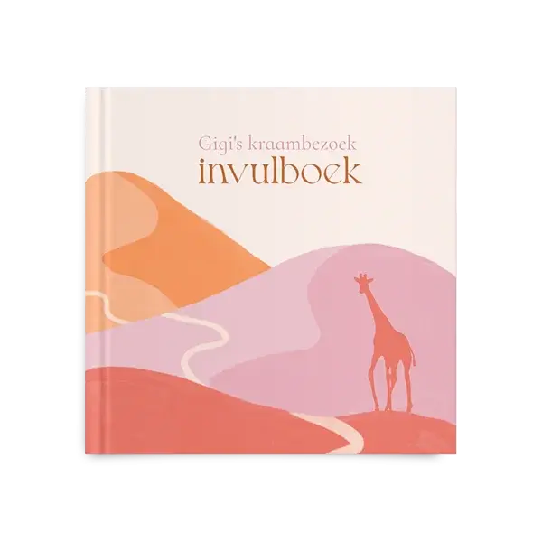 Kies voor dit kraambezoekboek met kleurrijk landschap en giraf en bewerk gemakkelijk in de editor.