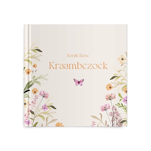 Kies voor dit kraambezoekboek met kleurrijke veldbloemen en bewerk gemakkelijk in de editor.