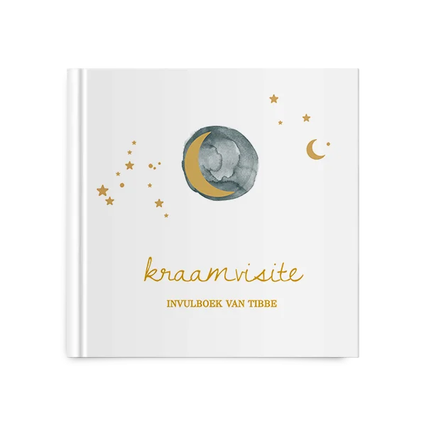 Kies voor dit kraambezoekboek met maan en sterren en bewerk gemakkelijk in de editor.