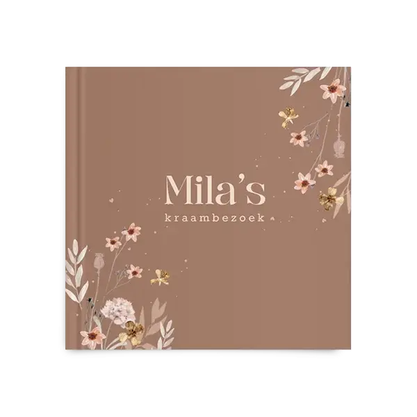 Kies voor dit kraambezoekboek met bloemen en bewerk gemakkelijk in de editor.