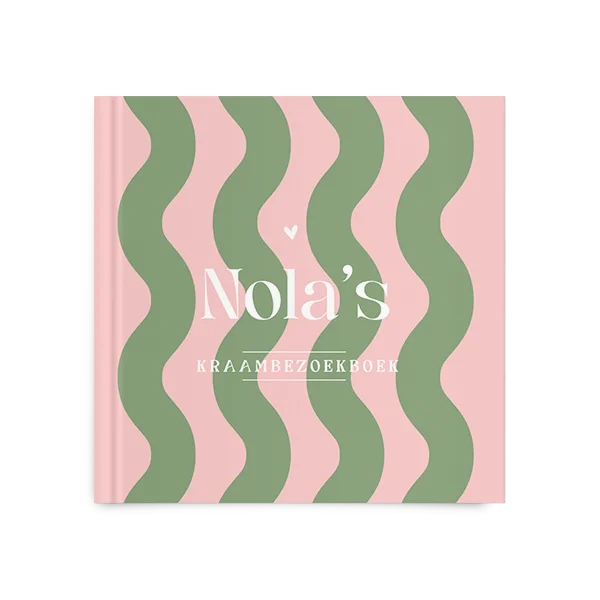 Een super trendy kraambezoekboek voor jullie kleintje in roze met groen golf patroon, zo leuk! Kies voor dit ontwerp en bewerk gemakkelijk in de editor.