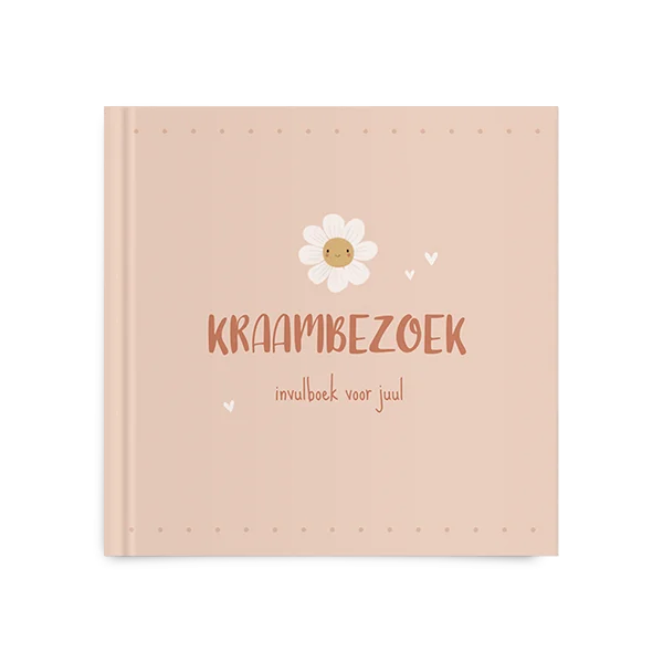 Een mooi kraambezoekboek voor jullie dochter in zachtroze met madeliefje erop, zo lief! Kies voor dit ontwerp en bewerk gemakkelijk in de editor.