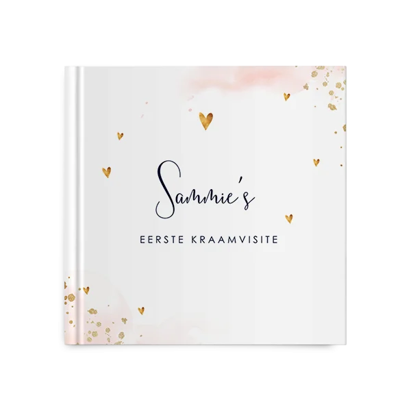 Kies voor dit kraambezoekboek met spetters en hartjes en bewerk gemakkelijk in de editor.