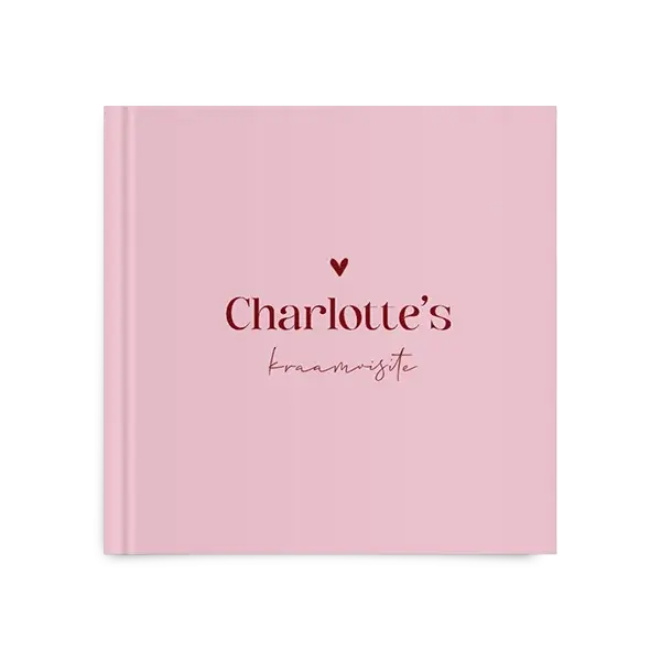 Kies voor dit kraambezoekboek in roze met rode details en bewerk gemakkelijk in de editor.
