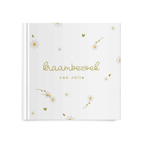 Kies voor dit kraambezoekboek met schattige madeliefjes en bewerk gemakkelijk in de editor.