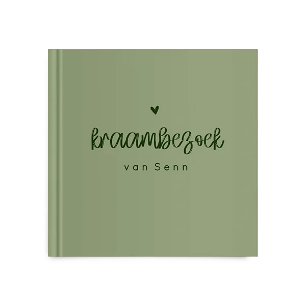 Kies voor dit stoere kraambezoekboek in legergroene kleur en bewerk gemakkelijk in de editor.