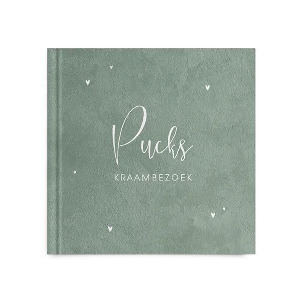 Kies voor dit kraambezoekboek met mintgroene velvetlook en bewerk gemakkelijk in de editor.
