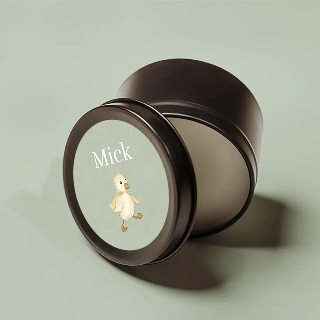 Je kunt deze doopsuikersticker in groen met eendje zelf naar wens bewerken in onze editor, pas zelf de kleuren of lettertypes aan. Thuis hoef je ze enkel nog op het doopsuiker item te plakken.