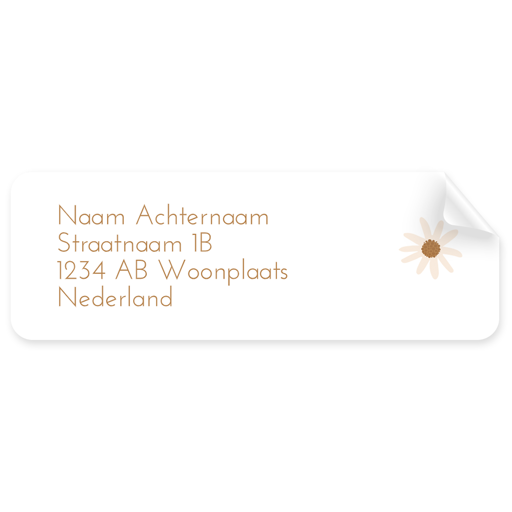Je kunt deze adresstickers voor op de envelop met schattig madeliefje zelf naar wens bewerken in onze editor en pas zelf de kleuren of lettertypes aan.