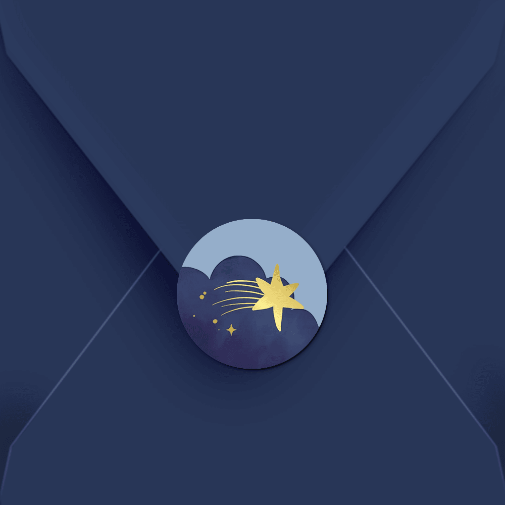 Maak een feestje van het geboortekaartje met deze bijpassende sluitsticker met blauwe lucht en ster! De goudfolie geeft een luxe finish. Je kunt de sticker zelf bewerken in onze editor.