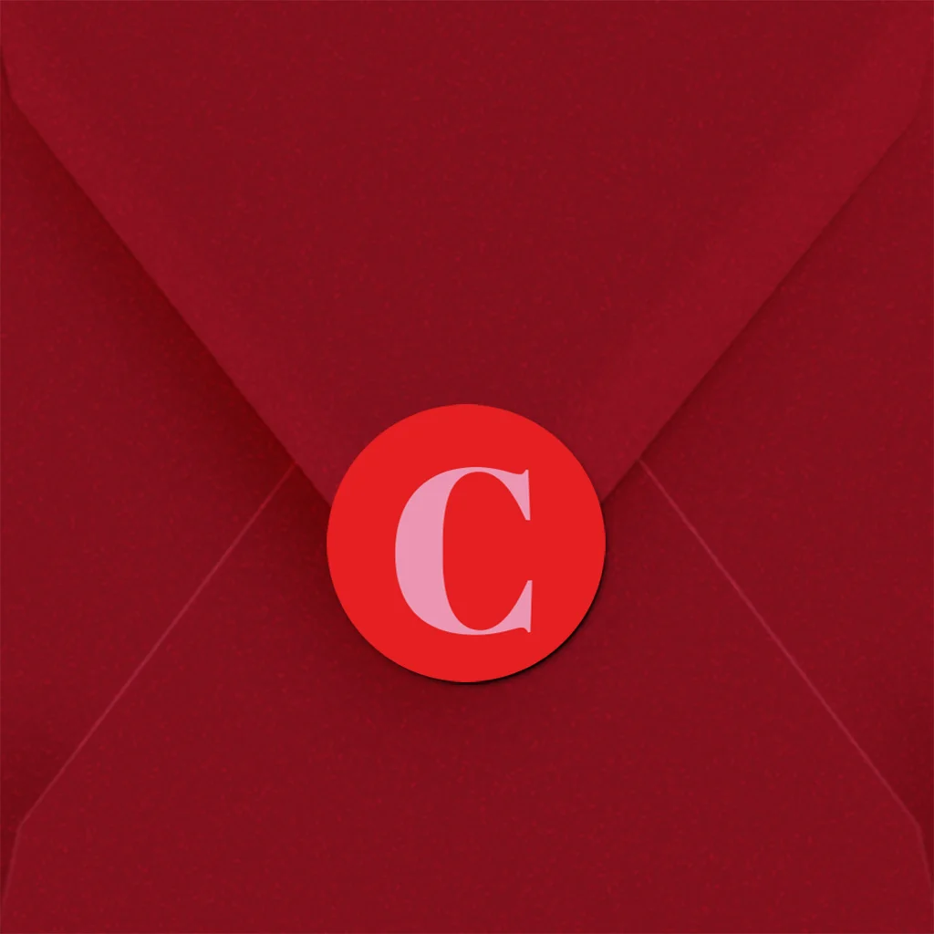 Maak een feestje van het geboortekaartje met deze bijpassende rode sluitsticker met roze letter! Je kunt de sticker zelf bewerken in onze editor.
