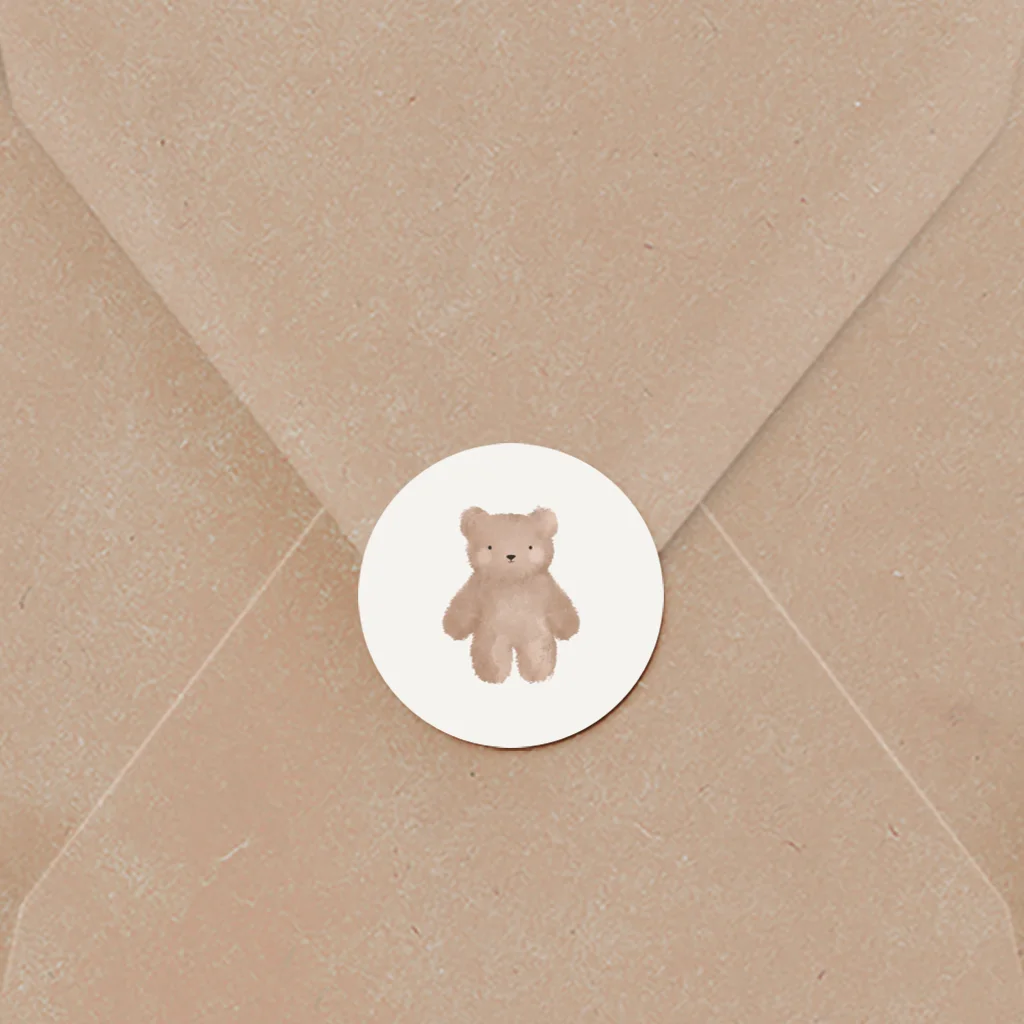 Sluitsticker geboortekaartje met teddybeertje