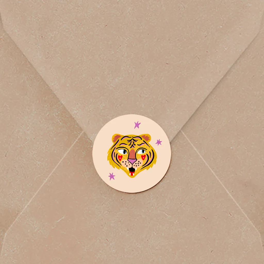 Maak van de kaart een feestje met een gekleurde envelop in combinatie met een bijpassende sluitsticker. Tip! Je kunt de sticker zelf bewerken in onze editor.