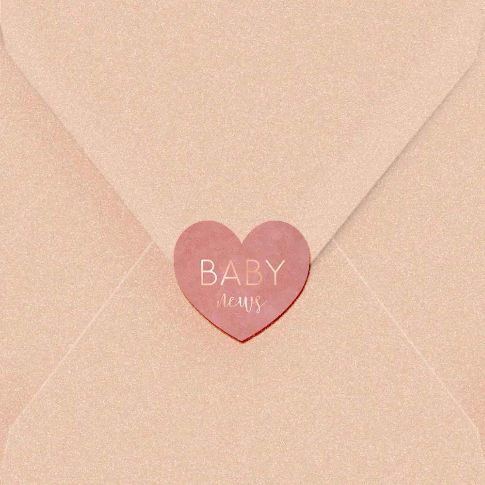 Je kunt deze lieve sluitsticker voor op de envelop in hartjes vorm met roséfolie zelf naar wens bewerken in onze editor. Je past gemakkelijk zelf de kleuren of lettertypes aan.