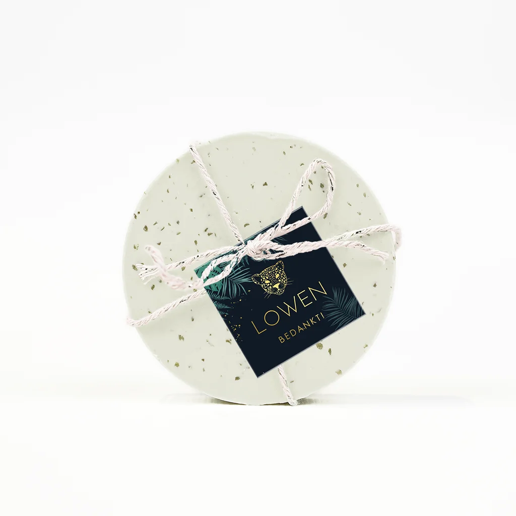 Thuis hoef je deze labeltjes met goudfolie enkel nog aan de doopsuiker te bevestigen met passend bevestigingsmateriaal.