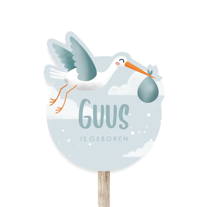 Geboortebord tuin blauw met ooievaar