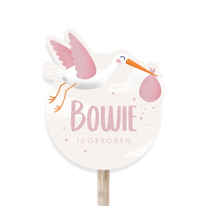 Geboortebord tuin ooievaar roze