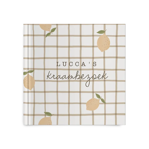 Kies voor dit kraambezoekboek met citroentjes en bewerk gemakkelijk in de editor.