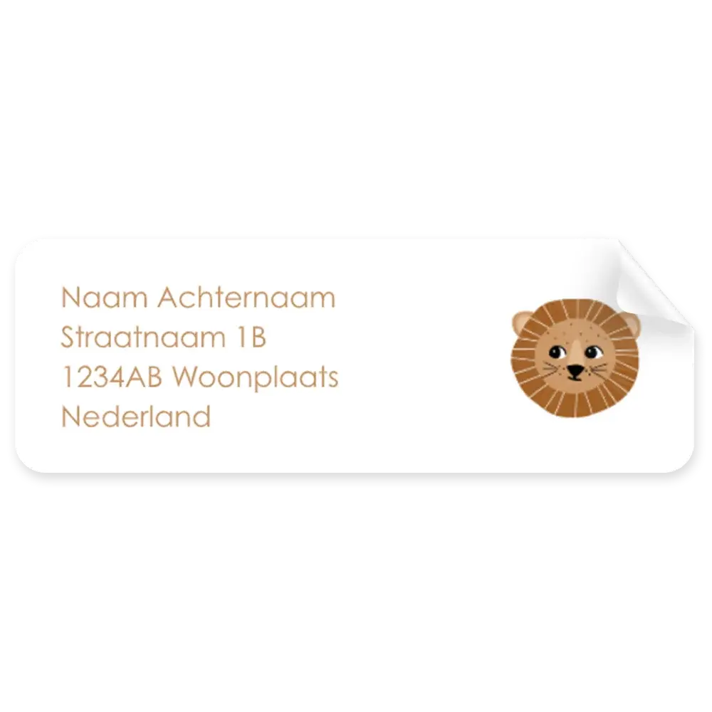 Vrolijke adresstickers met stoer leeuwtje