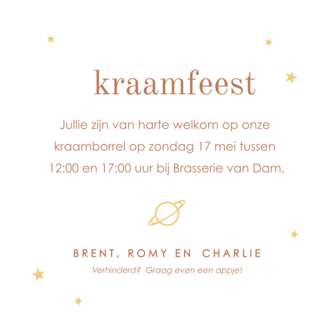 Al het drukwerk in één stijl. Van sticker tot geboortebord