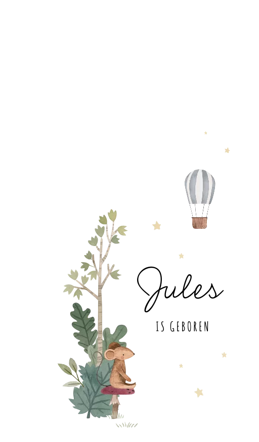 Maak de geboorte van je baby bekend met deze geboortevlag met bosdieren en luchtballon.