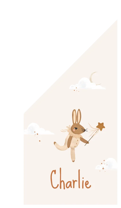 Dromerige geboortevlag met haasje, sterretjes en maan